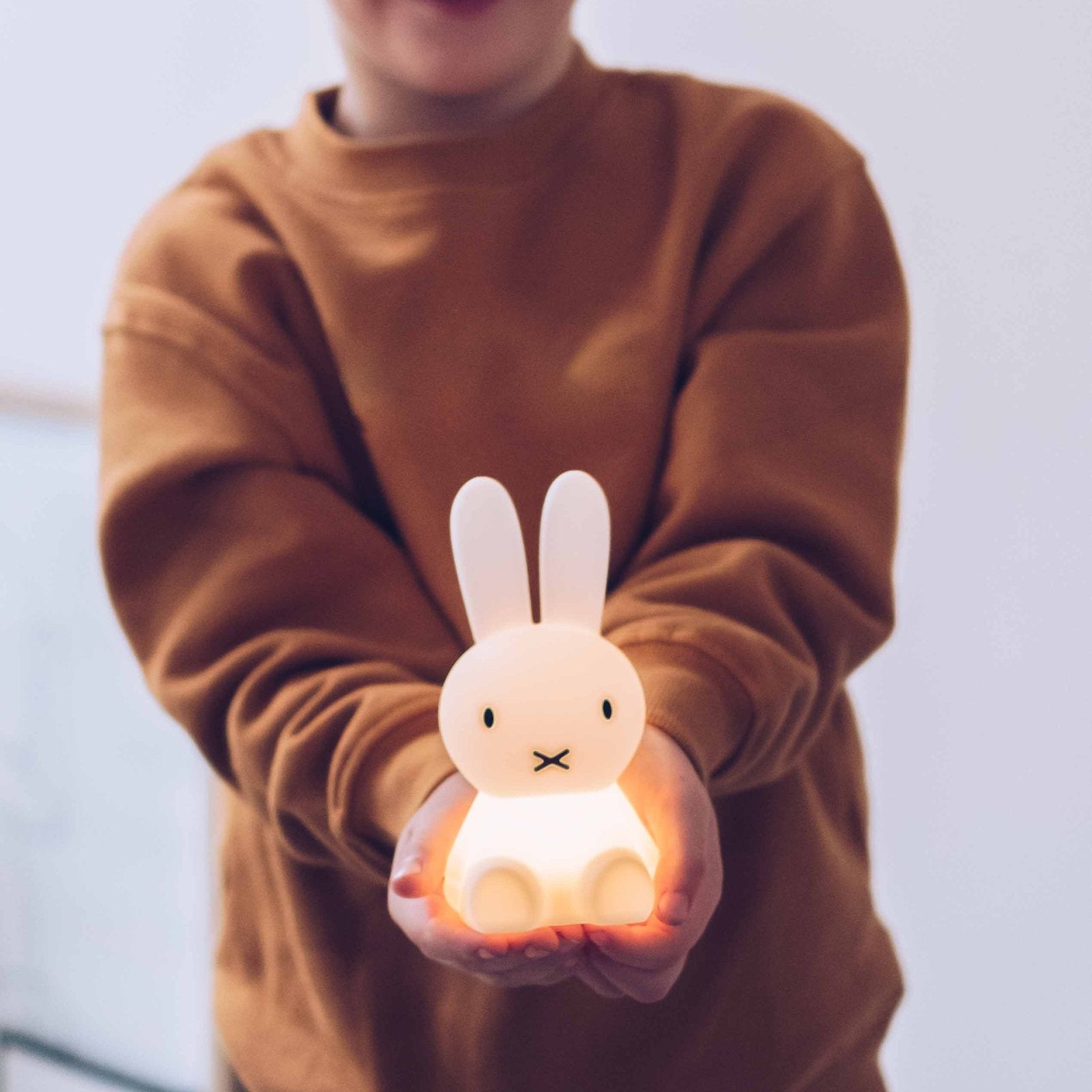 Miffy Bundle of Light úr Miffy & Friends línunni frá Mr Maria færir hlýju og gleði í hversdagsleikan. Ljósið er úr mjúku sílikoni og gefur frá sér mjúka birtu sem skapar notalega og örugga stemningu á heimilinu. Hvort sem Miffy stendur á náttborði, í hillunni eða er gefin sem gjöf, þá er hún alltaf hlý og vinaleg viðvera sem gleður börn og fullorðna á öllum stundum.