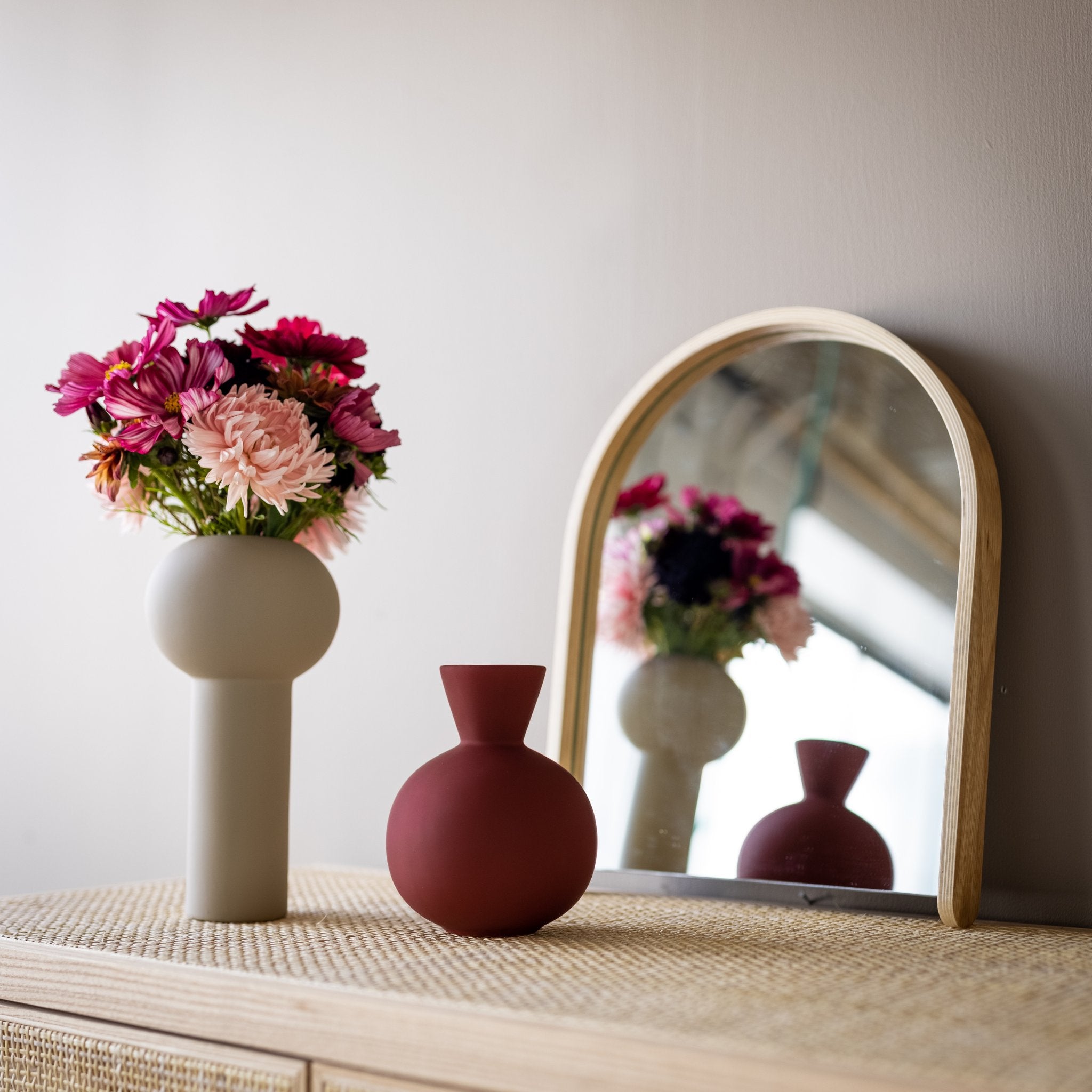Pillar blómavasinn frá Cooee er með mjúka, silkimatta áferð sem hefur orðið að einkennandi stíl fyrir merkið. Hver vasi er handgerður og handmálaður, sem tryggir að hvert eintak er einstakt. Hann er jafn fallegur einn og sér og með blómum eða plöntum, og blandast auðveldlega saman við aðra hönnunarhluti úr sömu línu.