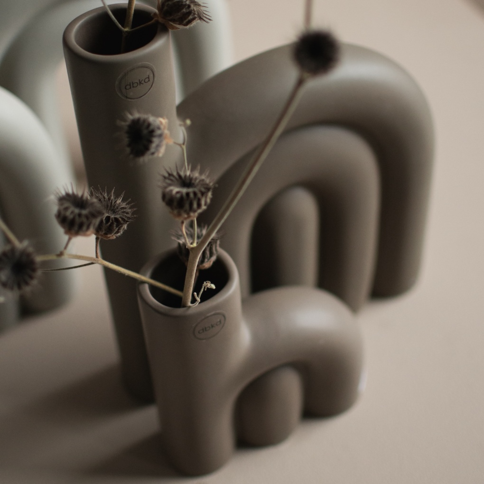 Rope vasinn frá DBKD er smekklegur vasi sem sameinar notagildi og fagurfræði. Hann er innblásinn af gömlum dyrum og bogum í arkitektúr og hefur hlýtt og öruggt yfirbragð sem lyftir bæði litlum blómvöndum og stökum greinum. Lögunin gerir það auðvelt að staðsetja á borði, gluggakistu eða í hillunni þar sem hann bætir rýminu fegurð og tímalausum svip.