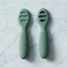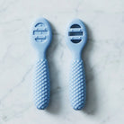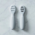 Bubble fyrstu skeiðarnar eru hannaðar til að gera fyrstu skref barnsins í átt að sjálfstæðri máltíð bæði auðveld og ánægjuleg. Fyrri skeiðin hefur slétt yfirborð sem hentar vel fyrir maukað fæði og fyrstu máltíðir. Sú seinni hefur opnar raufar sem gera barninu kleift að ausa þykkara fæði eins og kartöflumús. Báðar skeiðarnar eru með mjúkum áferðarögnum á hliðunum sem veita mildan létti við tannverki. Bólumynstrað handfangið er auðvelt fyrir litlar hendur að halda á.