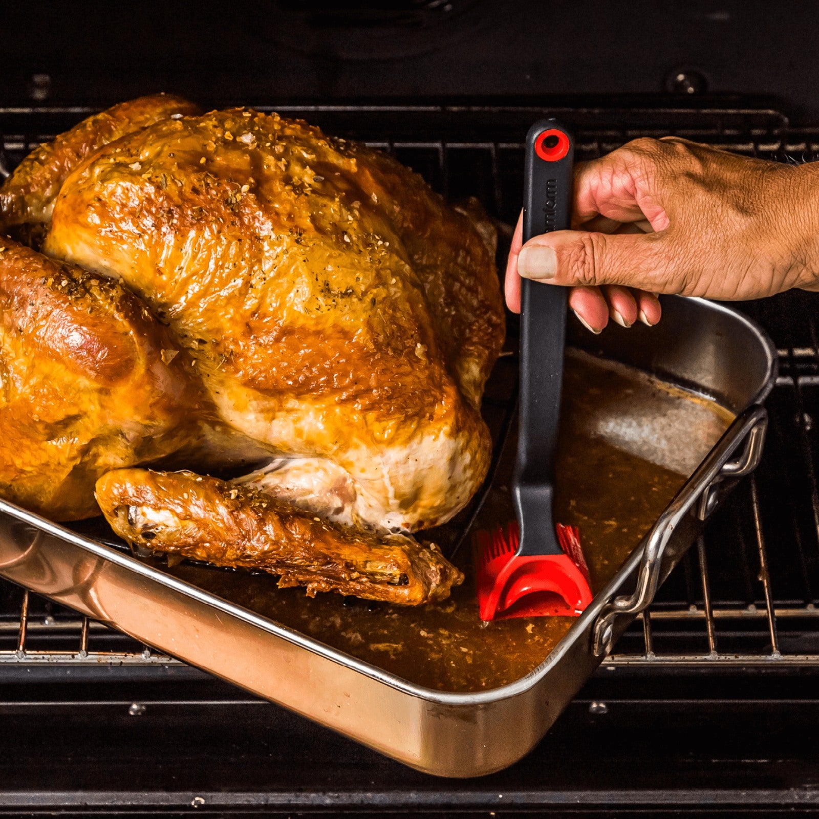 Brizzle er byltingarkenndur silíkonpensill sem gerir meira en aðeins að pensla, þar sem hann er sérstaklega hannaður til að gera alla eldamennsku og bakstur hreinni og fljótlegri. Snilldin felst í sveigjanlegum hausnum sem virkar líkt og lítil ausa en hann nær að skafa upp allt að eina matskeið af vökva eða feiti beint úr botninum á ofnfatinu án þess að þurfa að halla þungum pönnum eða skúffum. Inni í hausnum eru fjögur lítil göt sem stýra flæðinu jafnt niður í hárin, svo þú færð fullkomna dreifingu í hvert skipti sem þú penslar.