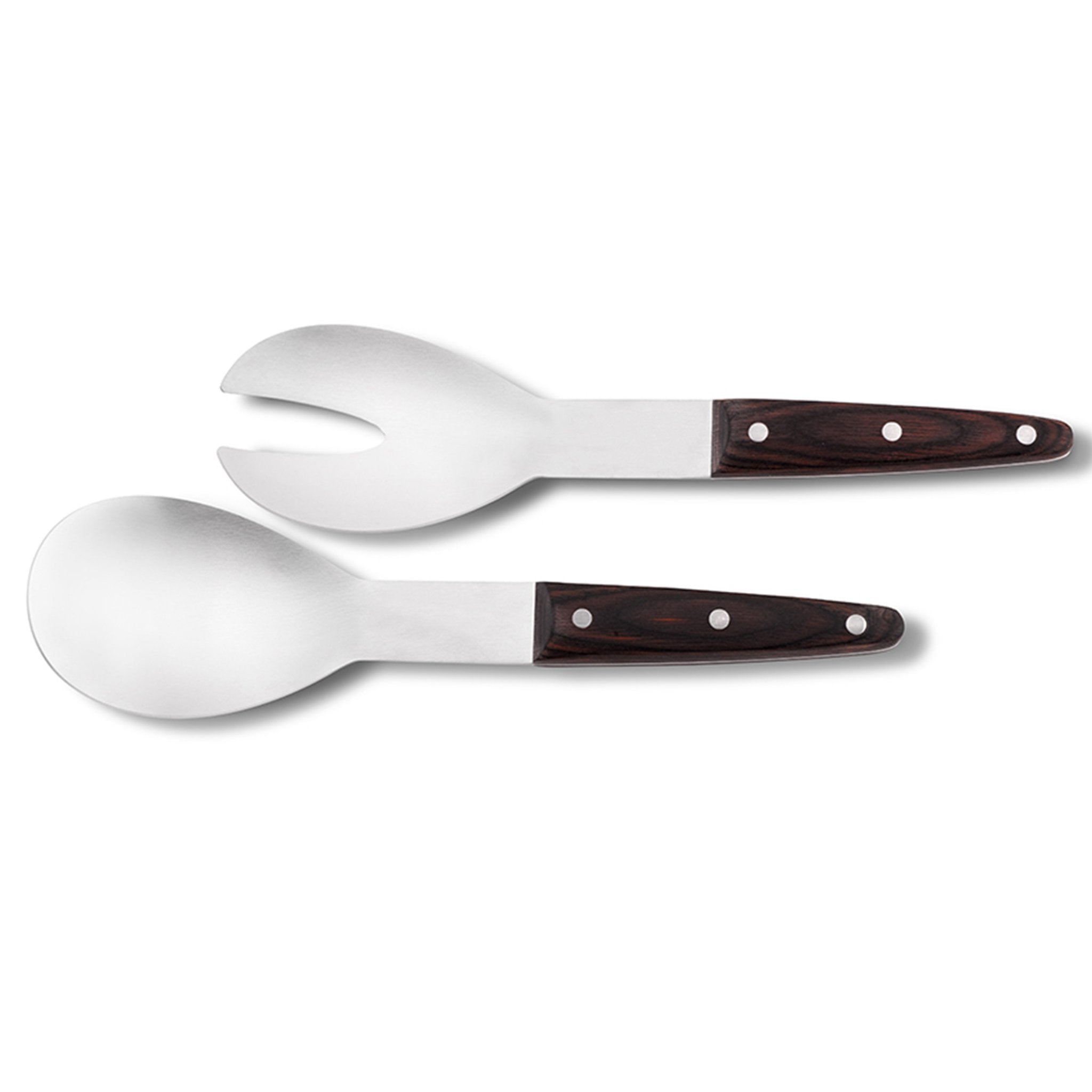 Stál salatsett með viðarhandföngum
