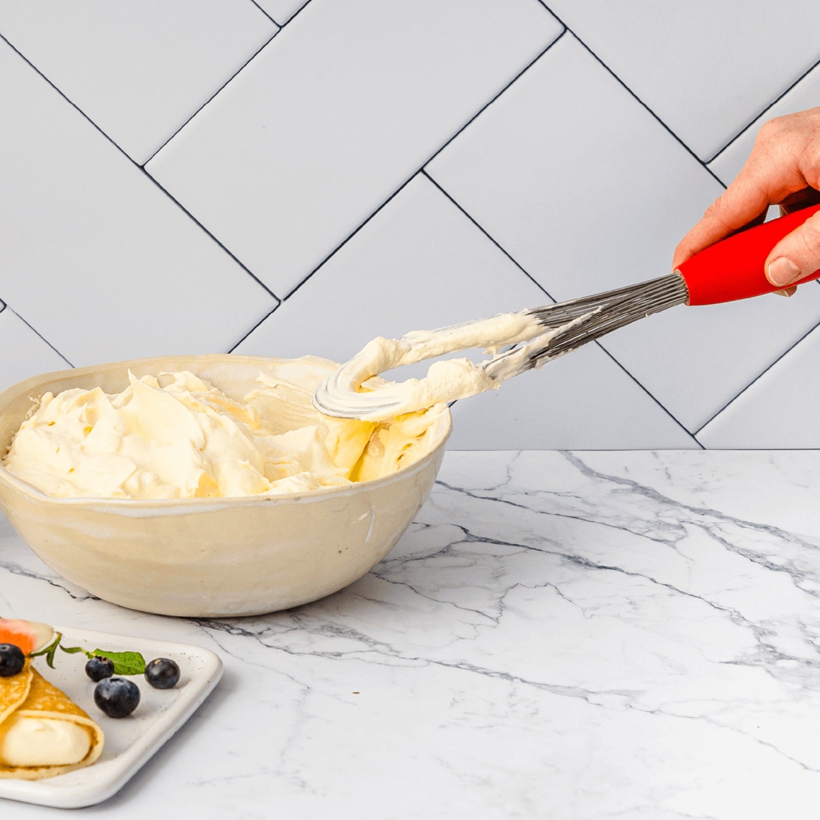 Hönnunin á Flisk tekur ekki aðeins mið af sjálfri matreiðslunni heldur líka skipulaginu í eldhúsinu. Þegar þú ert búinn að nota þeytarann er hægt að leggja hann alveg flatan, sem gerir það að verkum að hann tekur nánast ekkert pláss í skúffunni og flækist aldrei í öðrum tækjum. Vírar þeytarans eru gerðir úr hágæða stáli sem gefur góðan titring og tryggir hámarks loftun, svo útkoman verður alltaf létt og dásamleg.