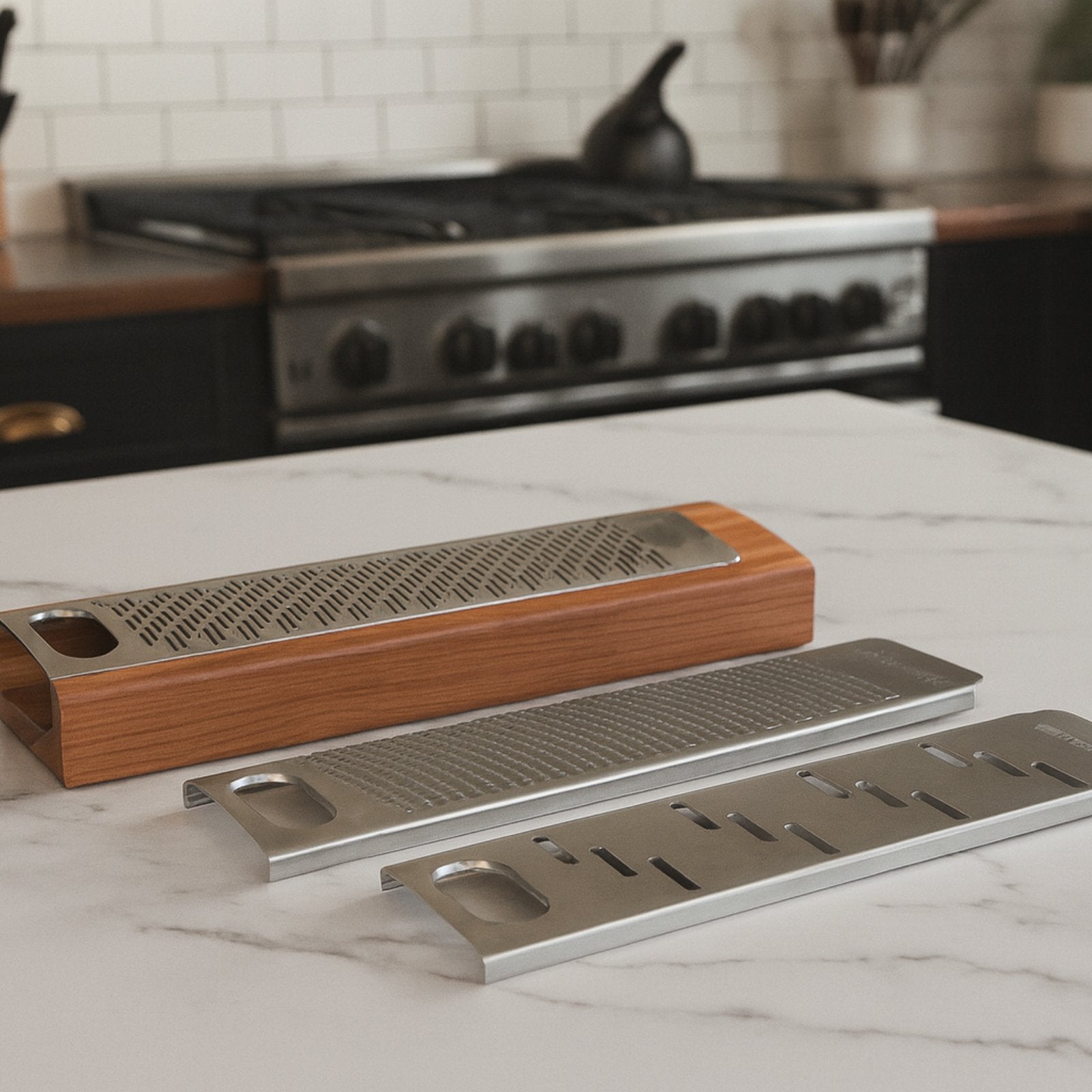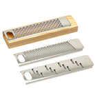 Gratta frá Legnoart er fjölnota rifjárn sem sameinar ítalskt handverk og hagnýta hönnun. Rifjárnið er búið til úr ryðfríu stáli með beittum blöðum sem tryggja nákvæmt og mjúkt rif án fyrirhafnar. Handfangið er úr traustri ösp og gefur bæði gott grip og hlýlegt yfirbragð. Rifjárnið kemur með þremur mismunandi blöðum sem gera það hentugt fyrir allskonar matargerð. Handgert á Ítalíu af Legnoart, sem hefur í áratugi hannað eldhúsáhöld með ástríðu, nákvæmni og virðingu fyrir hefðbundnu handverki.