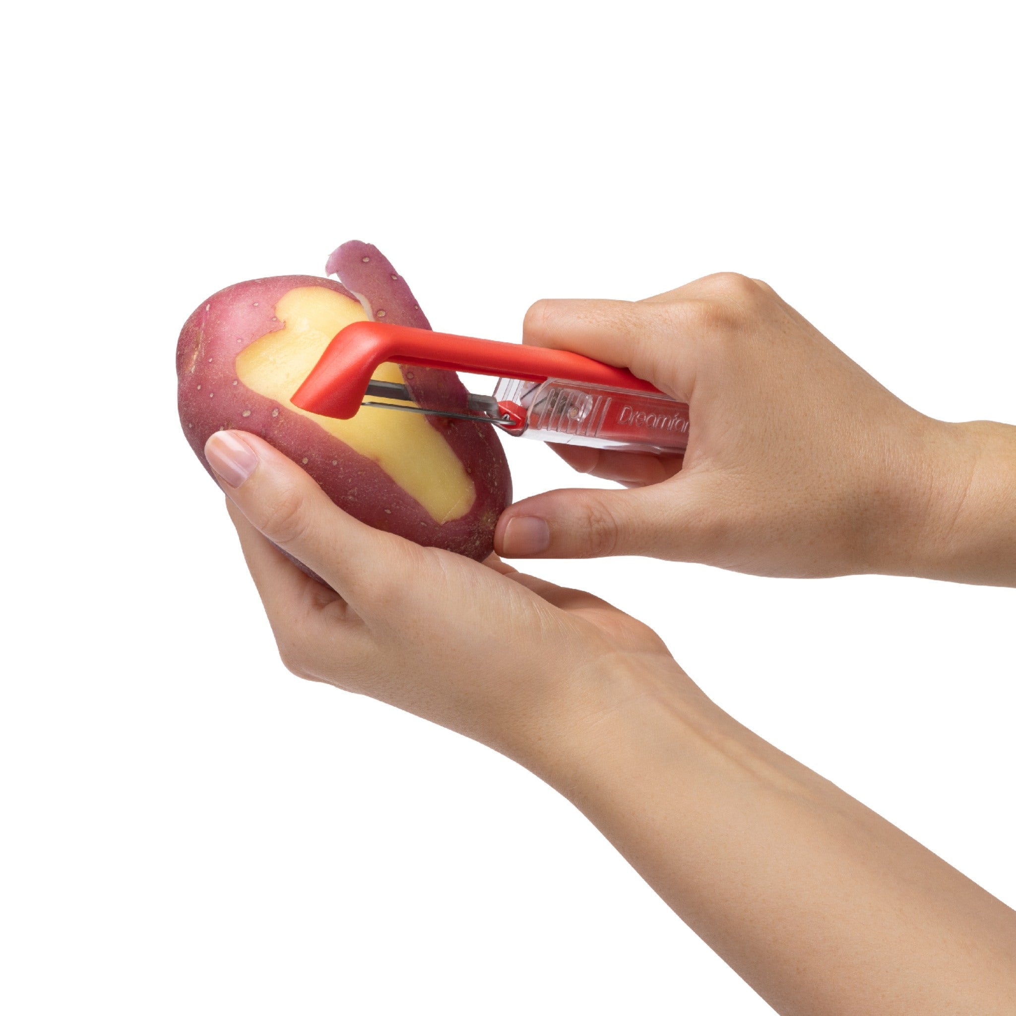 Eiginleikar: Innbyggður keramikbrýnir í hlífinni og sérstakur kartöfluaugnhreinsir á handfangi.