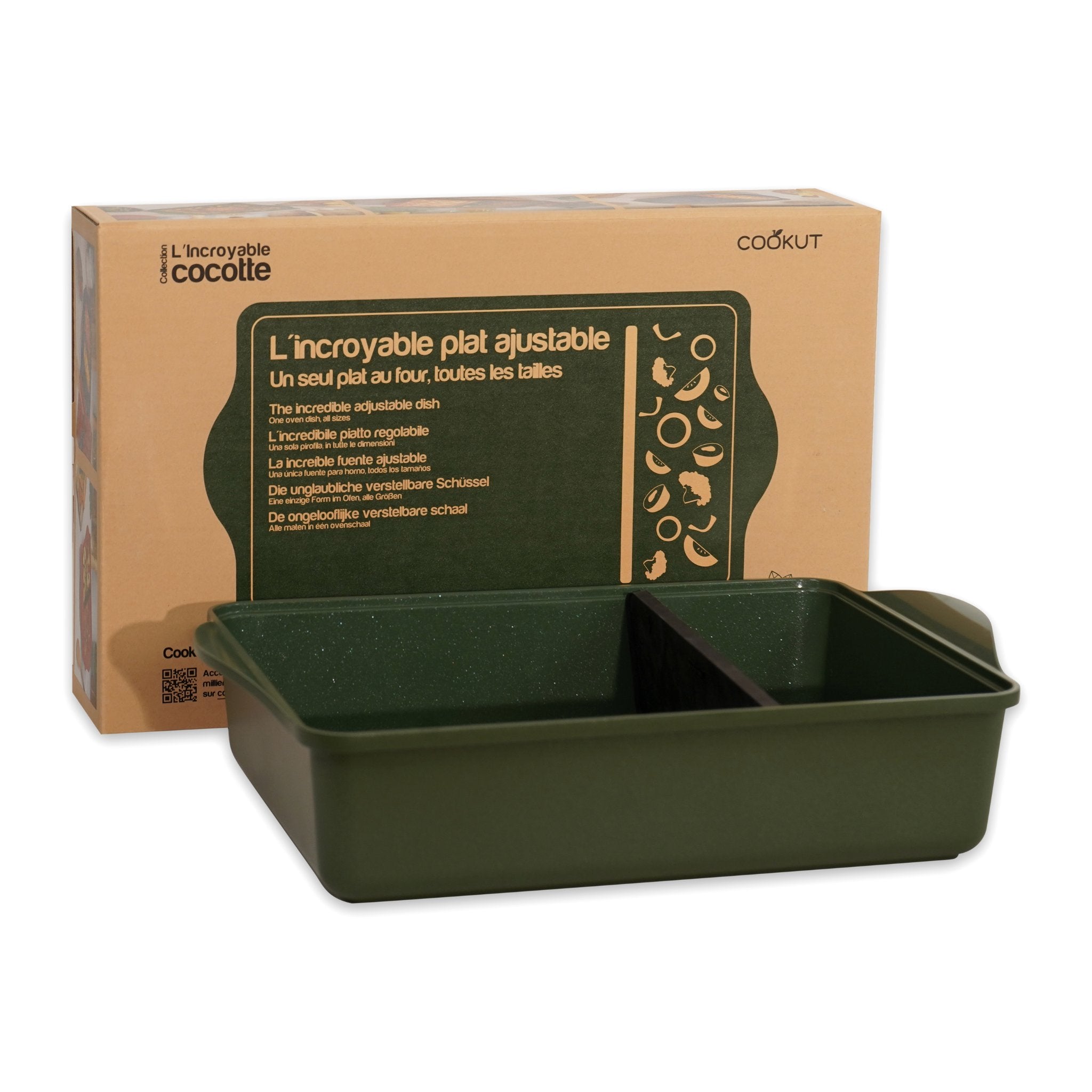 The Incredible eldfasta mótið frá Cookut er sniðug lausn fyrir eldamennsku þegar sveigjanleiki og einfaldleiki skipta máli. Með stillanlegu skilrúmi er auðvelt að aðlaga stærð mótsins að rétti dagsins, hvort sem eldað er fyrir fáa eða marga.