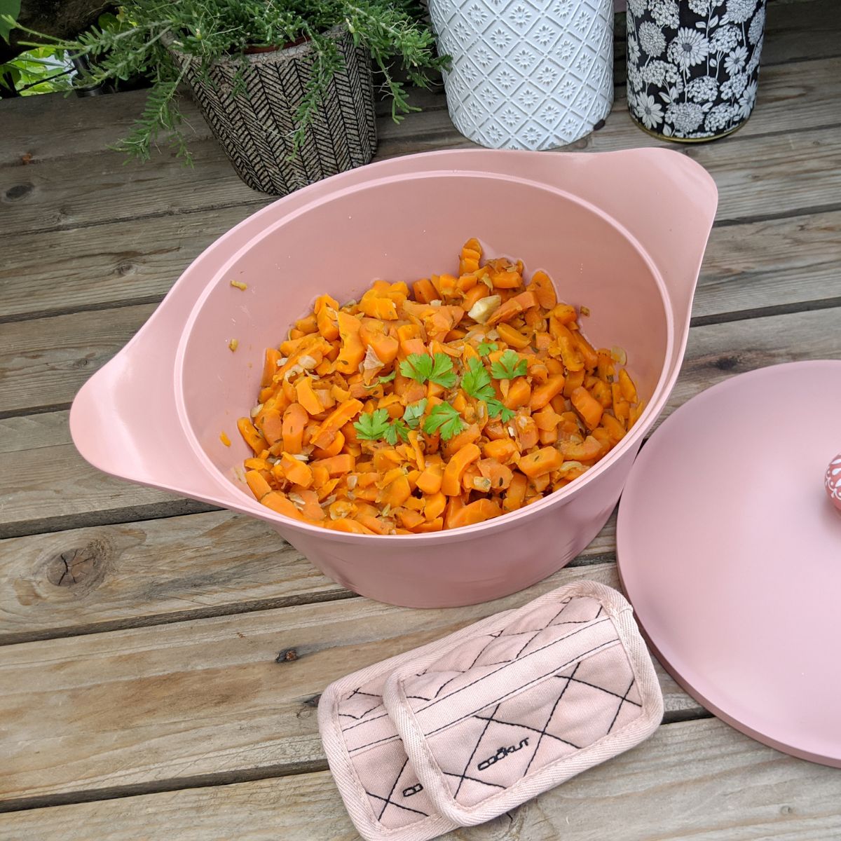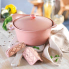 Potturinn er með náttúrulega steinefnahúð úr glerjuðum sandi sem kemur í veg fyrir að matur festist við botninn og inniheldur engin skaðleg efni. Hann hentar fyrir allar eldavélar, má fara í ofn við allt að 240°C og er einstaklega auðveldur í þrifum. Lokið er með dropakerfi sem heldur réttunum safaríkum og bragðgóðum, fullkominn félagi í eldhúsið fyrir þá sem kunna að meta einfaldleika, gæði og vistvæna hönnun.