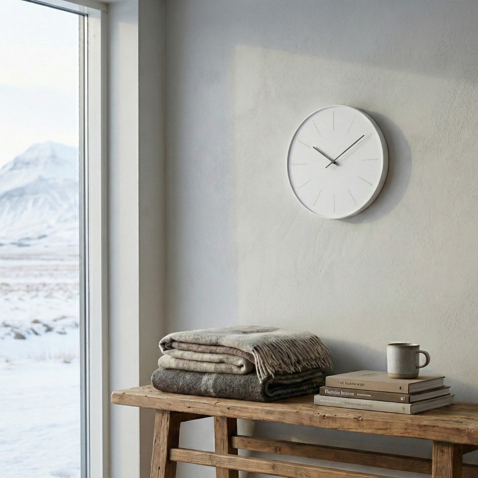 Klukkan er gerð úr vönduðu efni og er með hljóðlátu verki. Hún tikkar því ekki, sem gerir hana að góðum kosti fyrir rými þar sem þú vilt hafa næði, eins og í stofu, á skrifstofu eða í svefnherbergi. Einföld og stílhrein hönnunin sómir sér vel á flestum heimilum.