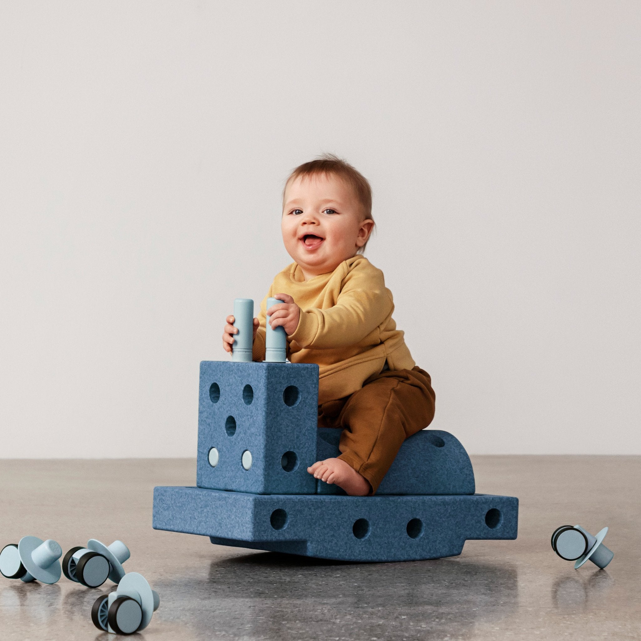 Curiosity Set er kjörinn byrjunarpakki fyrir yngstu börnin til að kynnast MODU leikfanga kerfinu. Með honum geta þau þróað hreyfifærni, jafnvægi og samhæfingu á skemmtilegan hátt. Settið býður upp á fjölbreyttar útfærslur, hvort sem er sem leikbretti fyrir yngstu börnin, róluvagga til að styrkja líkamsvitund eða skemmtilegt farartæki sem hægt er að ýta áfram.