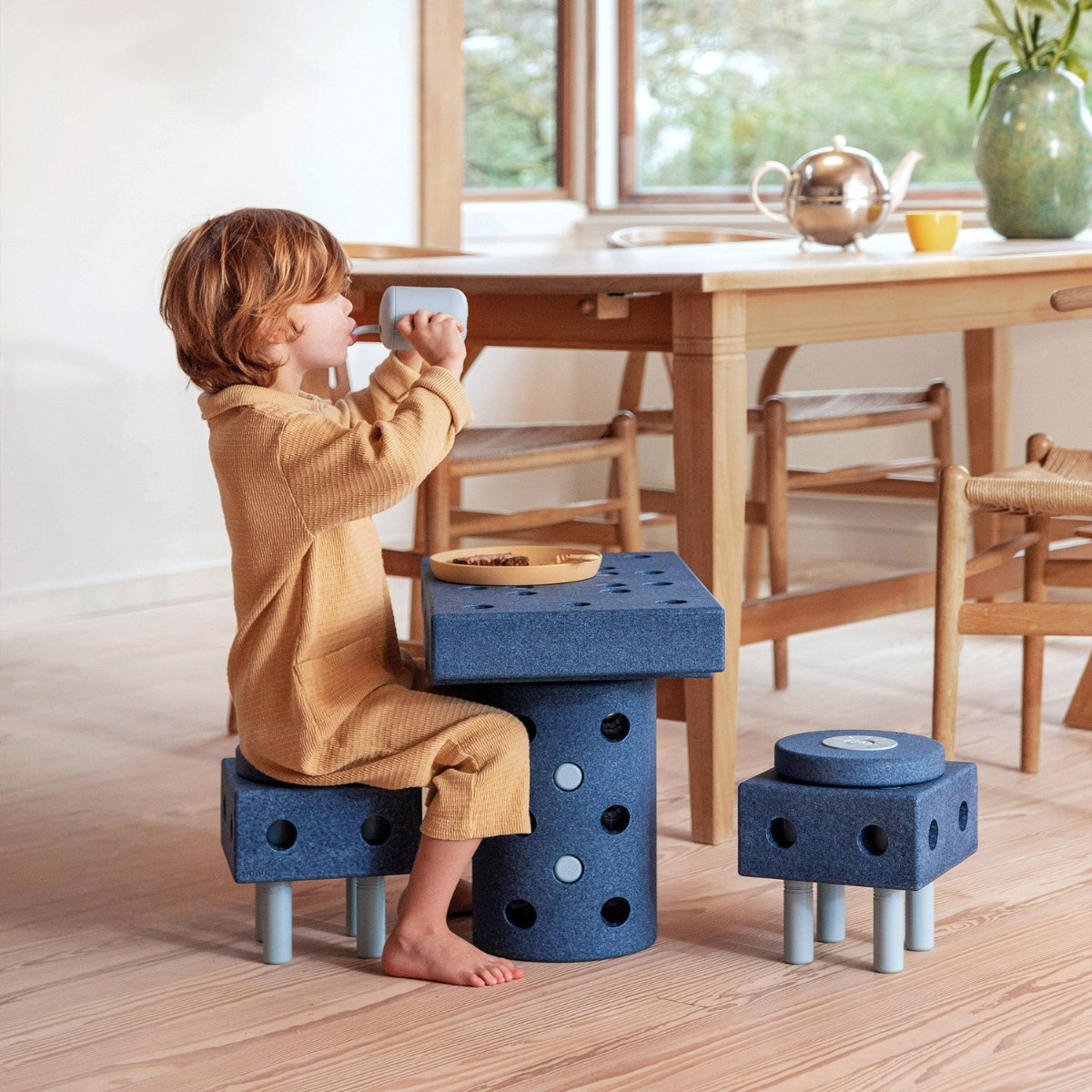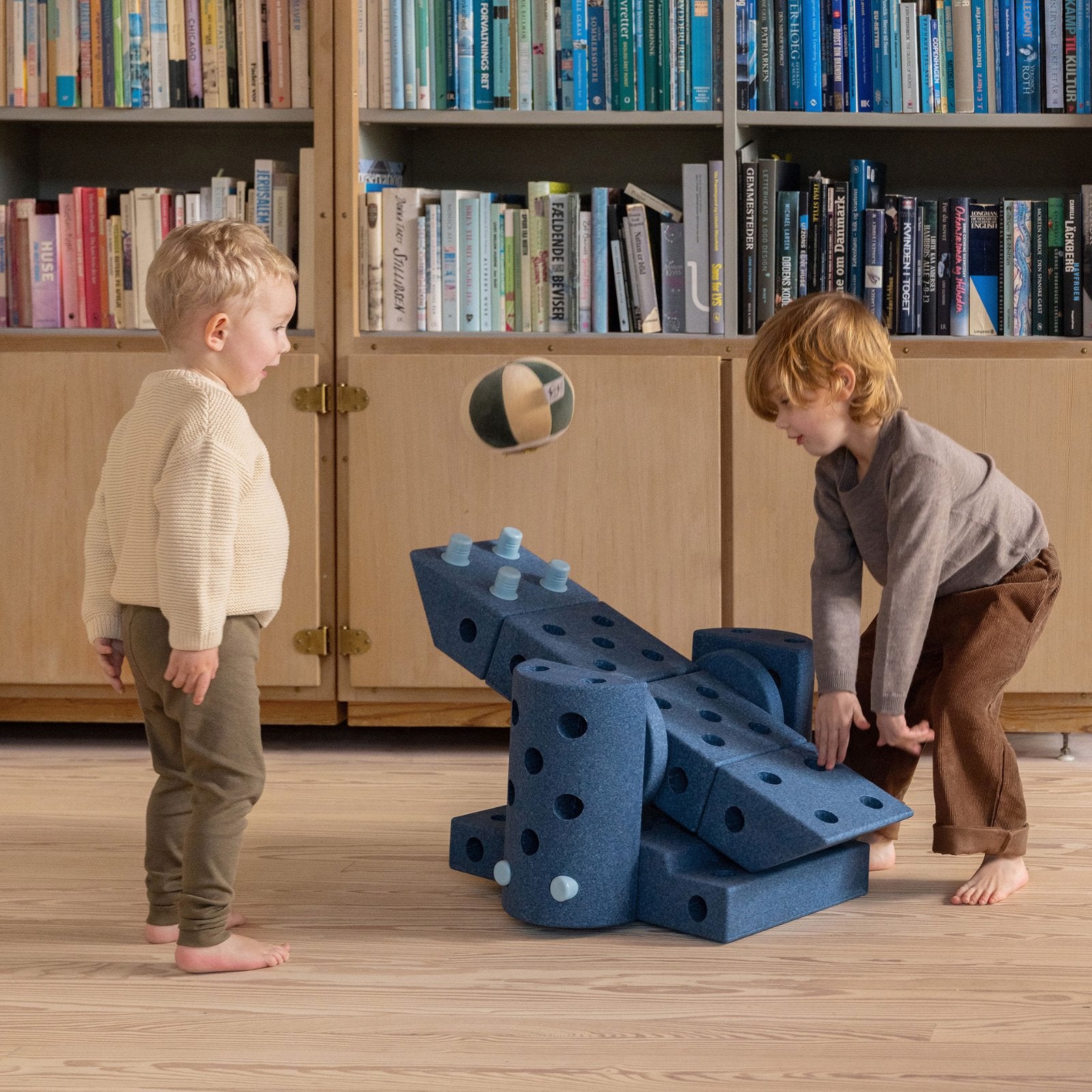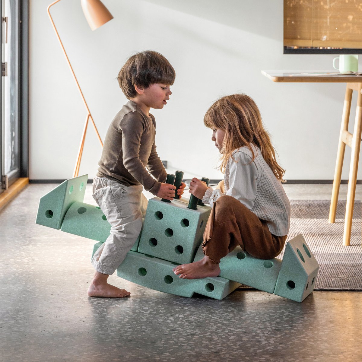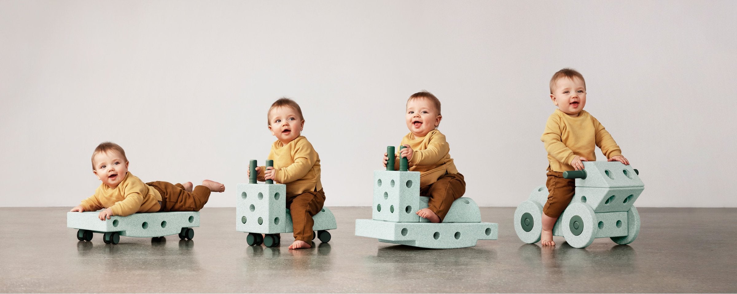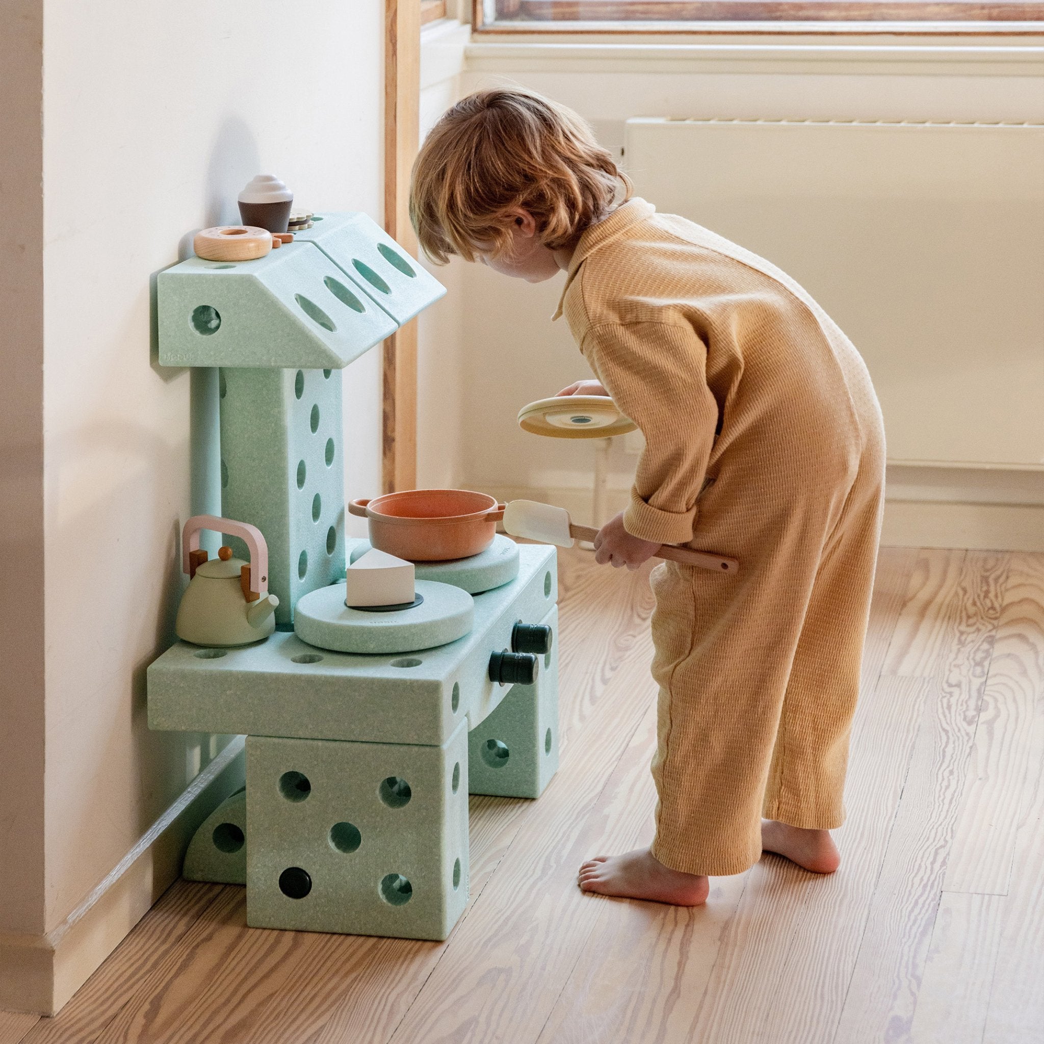 Leyfðu hugmyndafluginu að ráða för. Dreamer Set er stærsta MODU settið og býður upp á meira en 25 mismunandi leikföng og sköpunarverk sem börn geta bæði hjólað á, ruggað, rúllað, klifrað og jafnað sig á. Þetta sett er fullkomið fyrir systkini eða fjölskyldur sem vilja skapa saman og kanna endalausa möguleika leiks og hreyfingar. Byggðu göngugrind fyrir yngsta barnið, leikeldhús fyrir það eldra eða spennandi rennibraut sem kallar fram gleði og uppgötvun. Sköpunin byrjar í byggingunni og heldur áfram í leiknum árum saman.