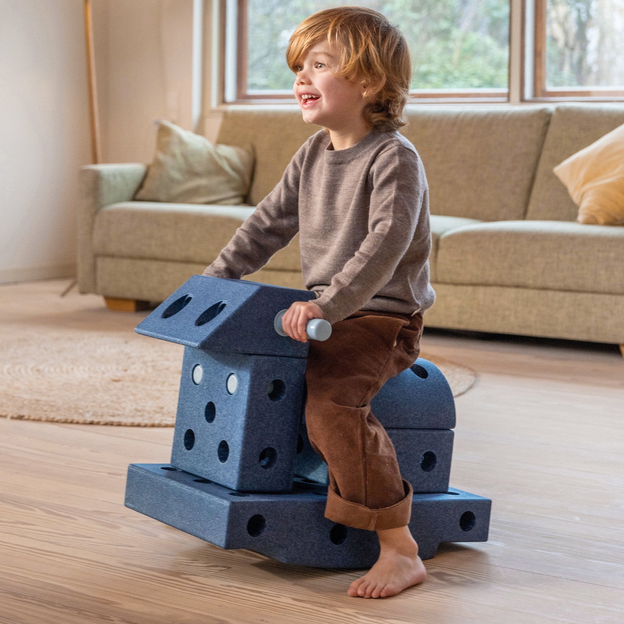 Explorer Set er fullkomin byrjun fyrir litla hönnuði og ævintýramenn. Settið býður upp á meira en 15 mögulegar samsetningar og endalausa möguleika til sköpunar og leiks. Börn byggja reiðhjól, rugguhesta, jafnvægisleiki og ímyndaðar verur sem efla hreyfifærni, sköpun og sjálfstraust. MODU örvar opinn leik þar sem barnið leiðir sjálft ævintýrið og foreldrarnir mega alveg taka þátt líka.