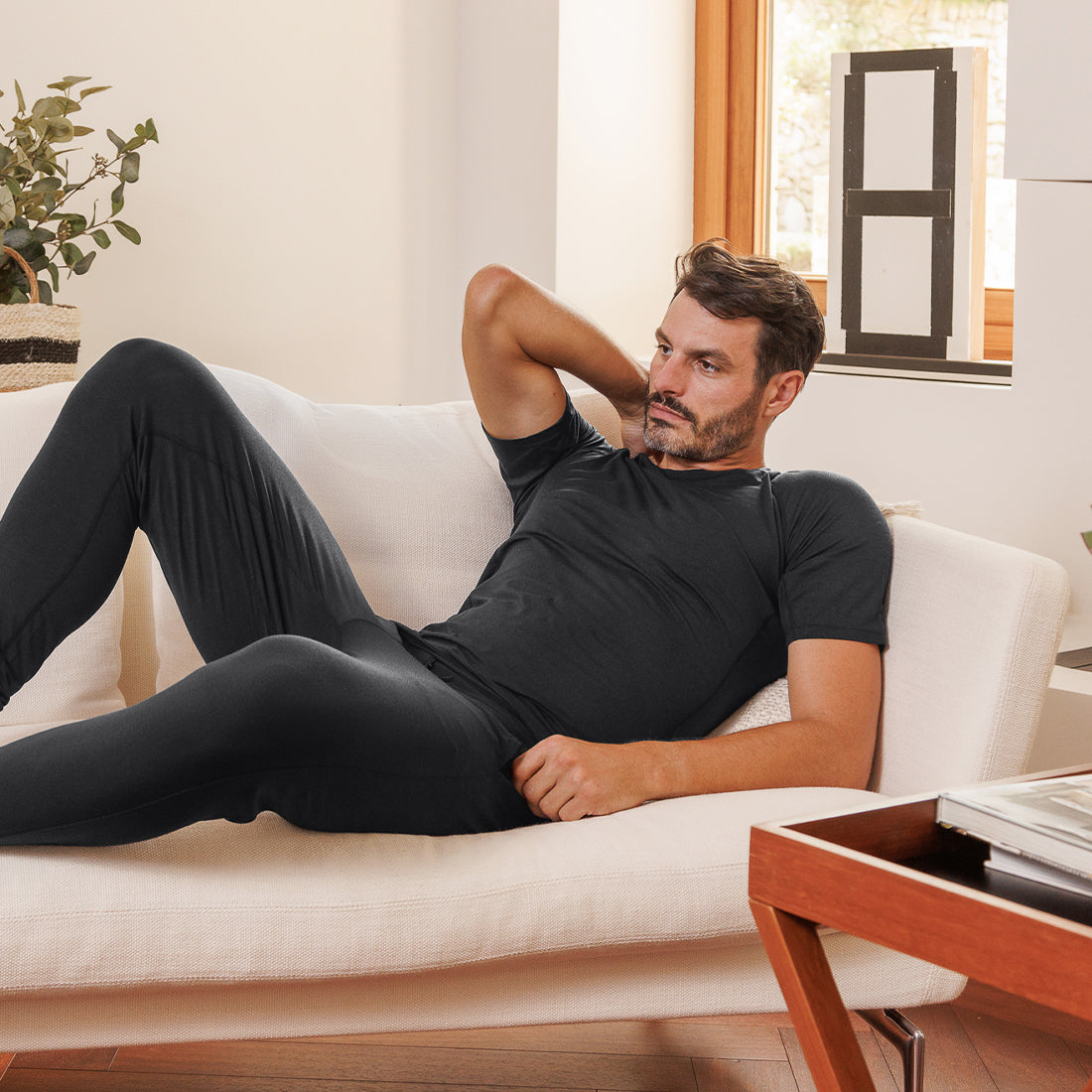 Buxurnar stjórna raka fjórum sinnum betur og eru tvöfalt mýkri en hefðbundin náttföt úr bómull. Sérsaumað klof tryggir aukin þægindi og kemur í veg fyrir að buxurnar renni upp, á meðan flatir vasar nýtast vel í daglegri notkun. Útkoman eru náttbuxur sem sameina mýkt, þægindi og stíl, fullkomnar fyrir svefninn og afslöppun heima við.