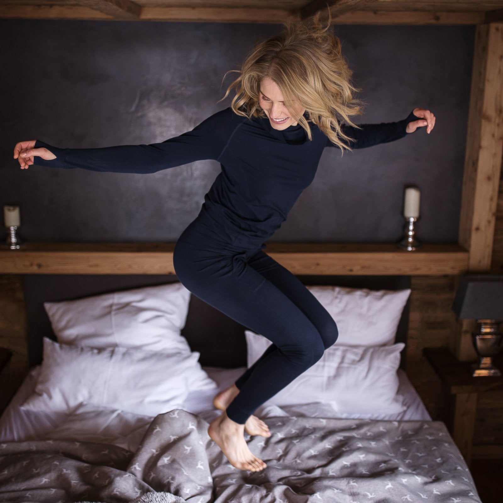 Hlý og mjúk náttföt úr merínóull og trefjum úr eucalyptus trjám sem halda þér við kjörhitastig alla nóttina. Efnið andar fjórum sinnum betur en bómull, er létt og dregur náttúrulega í sig raka án þess að halda honum. Þessi náttbolur er einstaklega mjúkur, heldur sér ferskum lengur og veitir þér hlýju án þess að verða of heitt. Fullkominn fyrir kaldar nætur eða þá sem kjósa mildan hita og náttúrulegt jafnvægi.