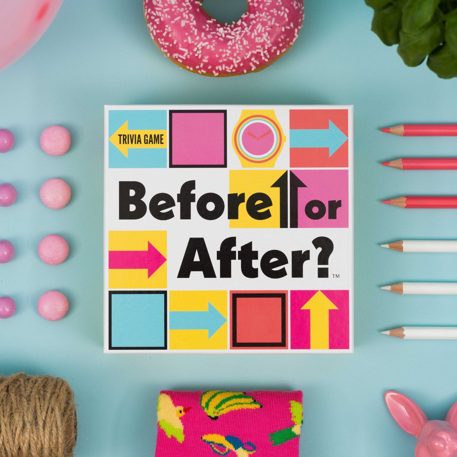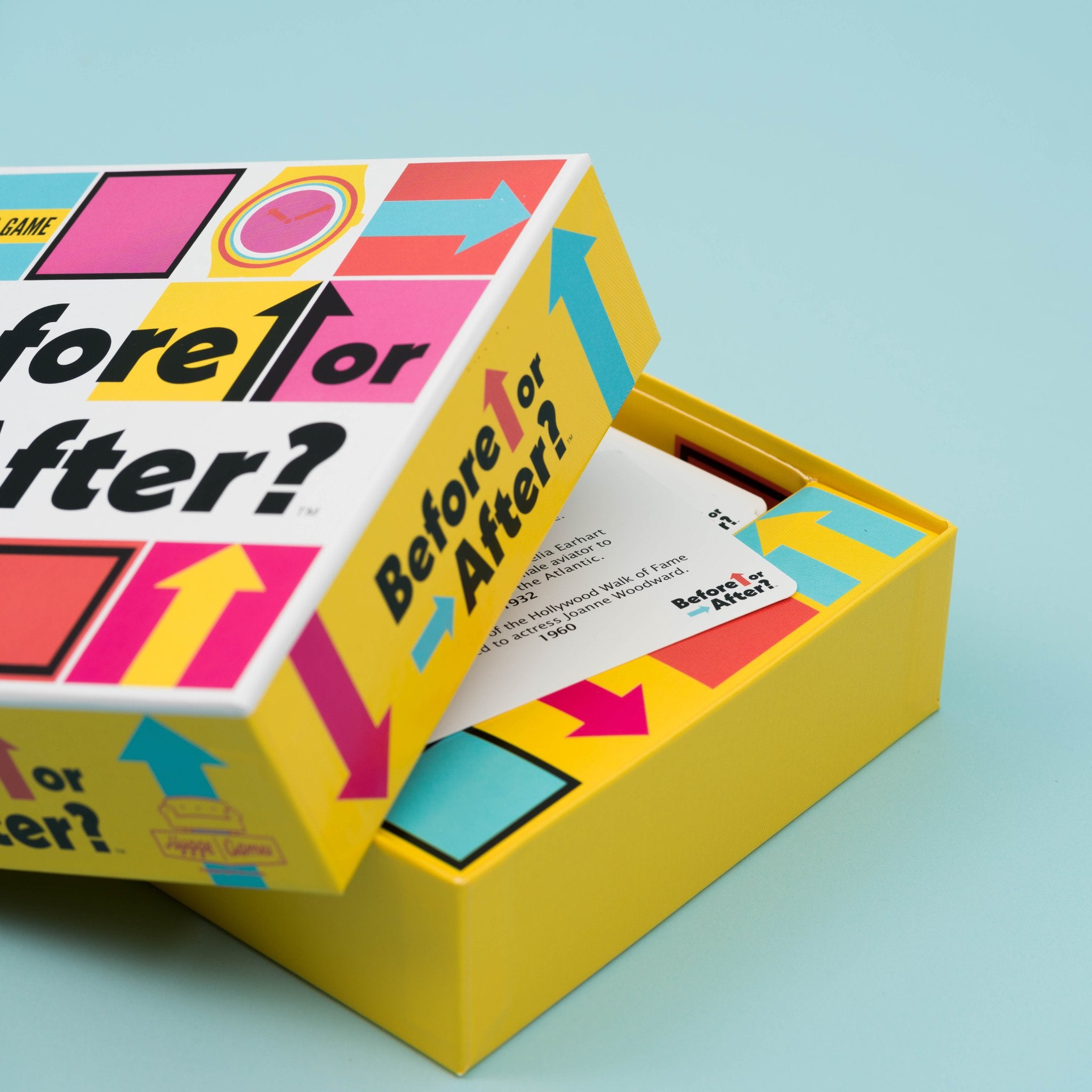 Var Caesar-salat fundið upp áður eða eftir rennilásinn? Hvort kom á undan: ilmtré fyrir bíl eða kúludeodorant? Hafði Titanic verið fundin þegar fyrsta maraþonið í New York fór fram? Þetta eru dæmi um spurningar í Before or After? frá Hygge Games.