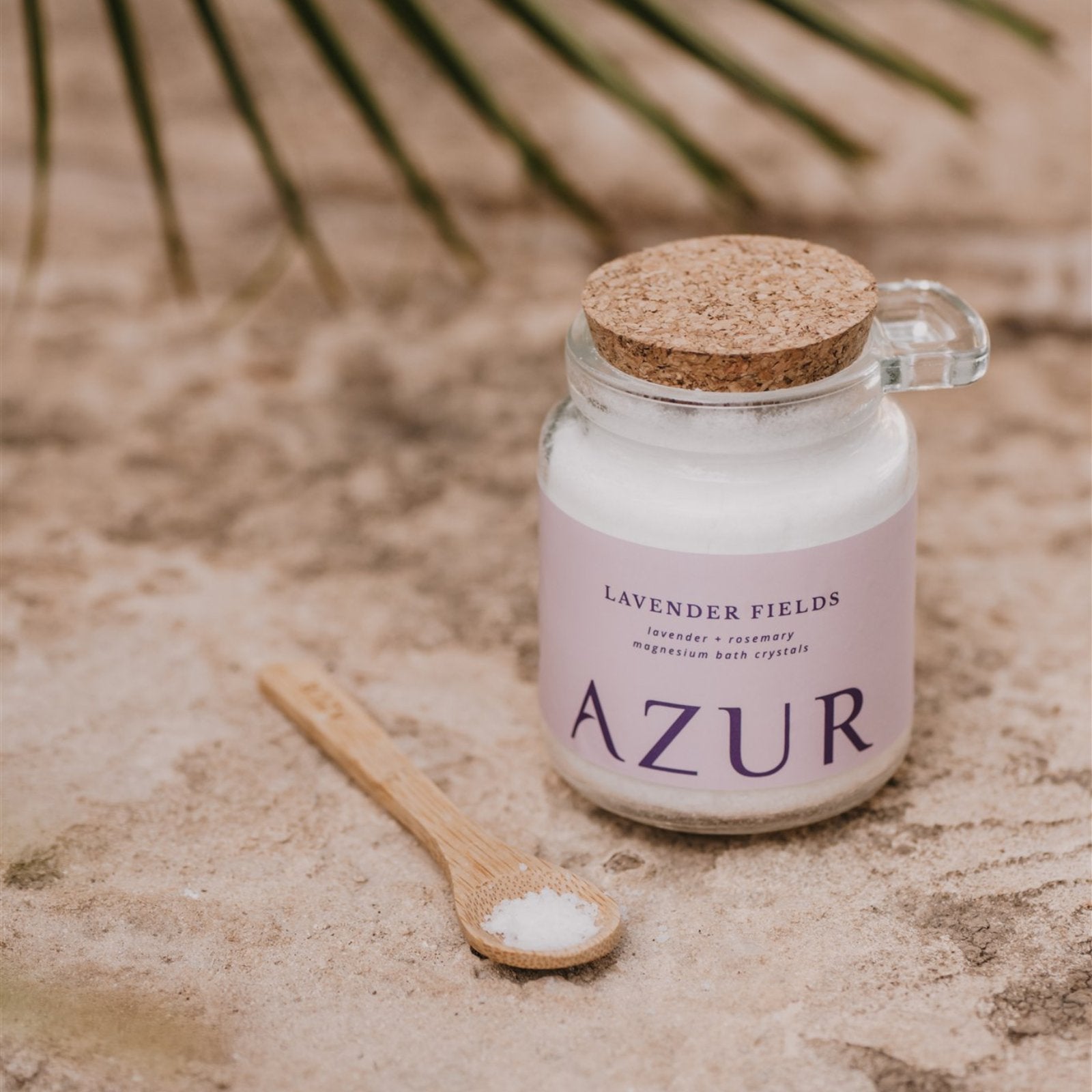 Azur baðsöltin bjóða upp á lúxusbað sem róar líkama og sál. Þau eru unnin úr hreinu magnesíumsalti sem dregur úr spennu í vöðvum og hefur róandi áhrif á húðina. Nærandi möndluolía skilur húðina eftir mjúka og vel nærða, á meðan náttúrulegar ilmolíur skapa dásamlega ilmupplifun sem tengir þig við kyrrð og vellíðan. Hvert baðsalt er ilmandi eingöngu af hreinum ilmolíum, án tilbúinna ilm- eða litarefna.