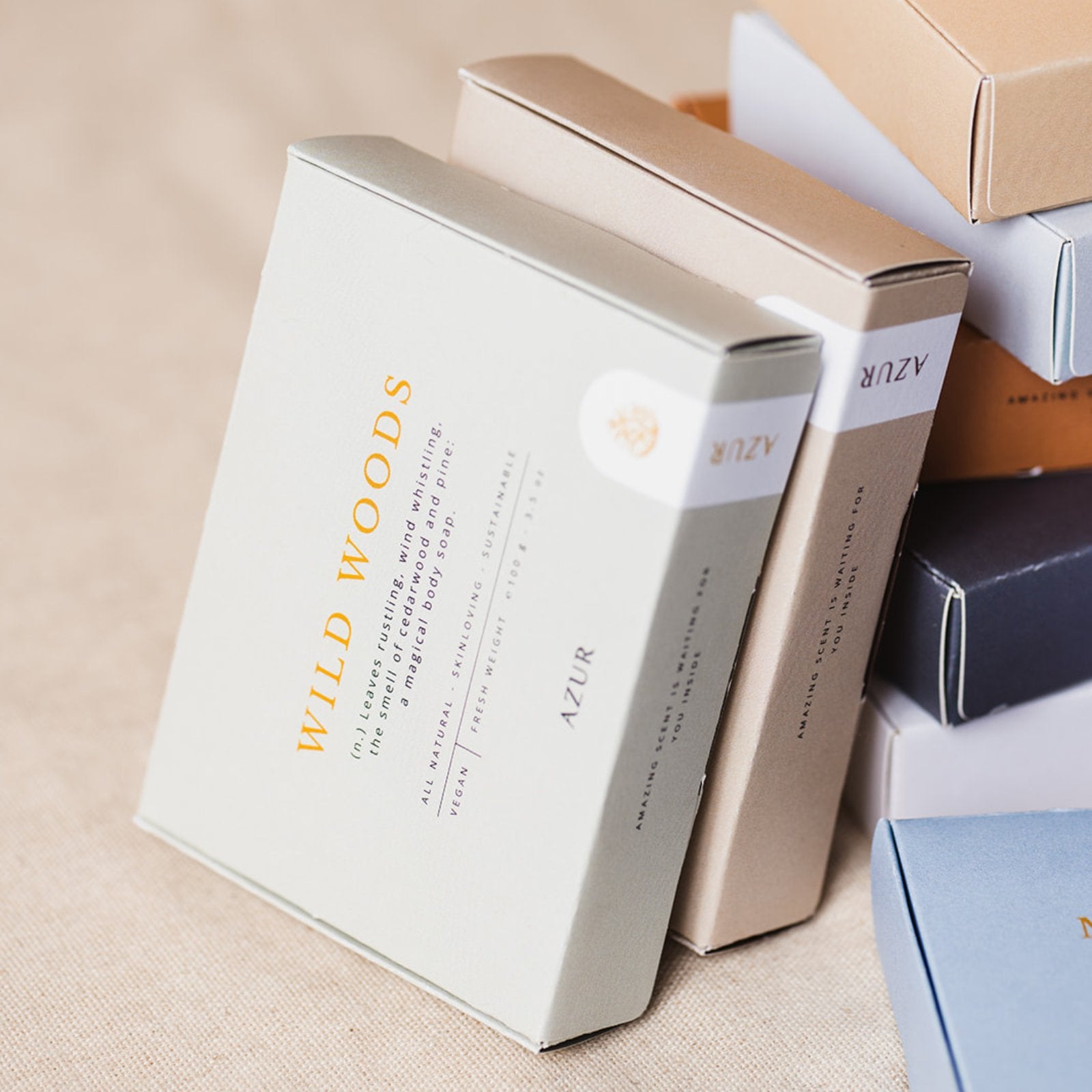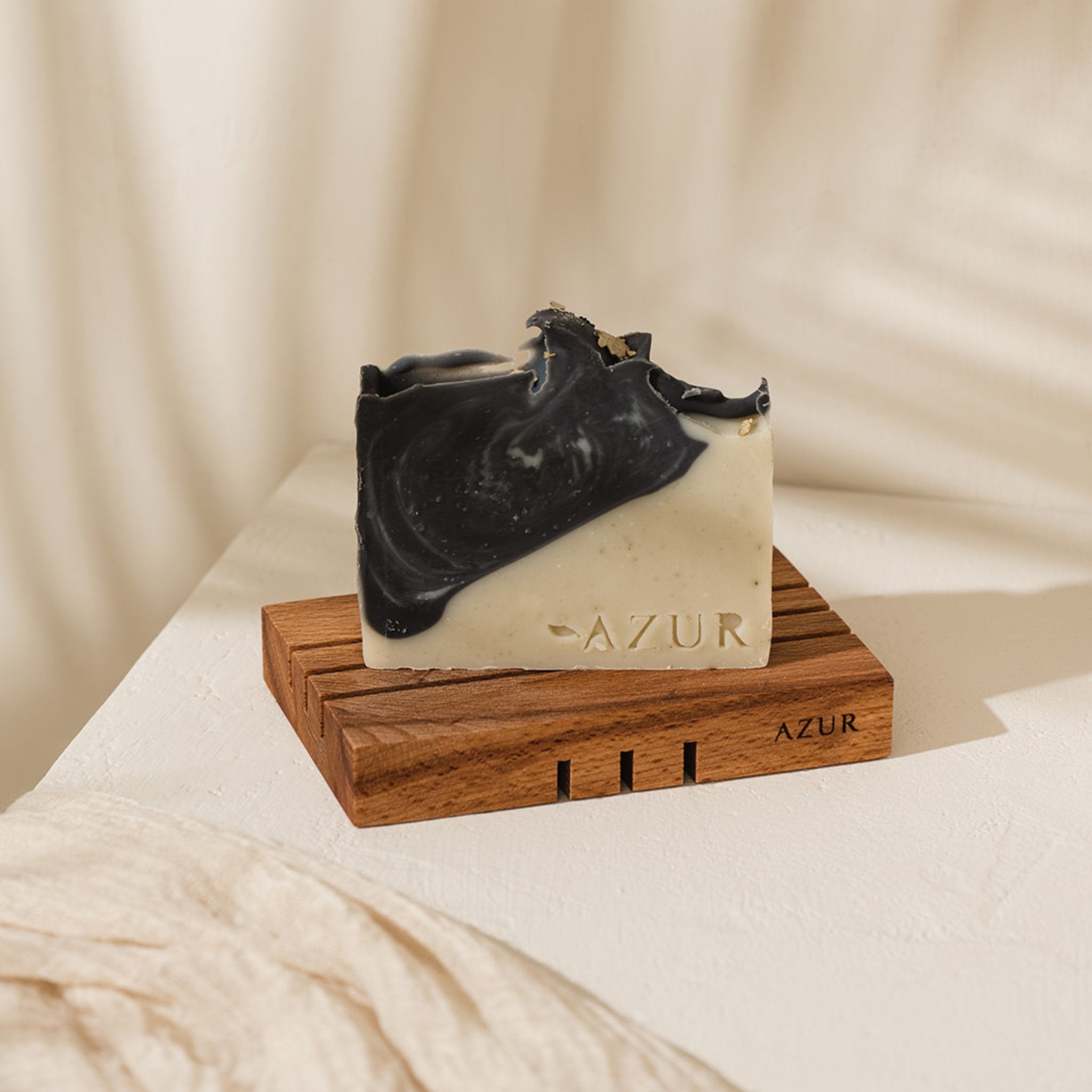Wild Woods frá Azur leiðir hugann inn í friðsælan skóg þar sem ilmur af sedrusvið og furunálum blandast fersku lofti og náttúrulegum jarðkeim. Sápan er gerð úr náttúrulegum hráefnum sem hreinsa húðina á mildan hátt og skilja hana eftir mjúka og endurnærða. Grænn leir og virk kol gefa sápunni djúpan, náttúrulegan lit og hreinsa húðina varlega án þess að þurrka hana. Nærandi olíur og smjör viðhalda raka og róa húðina, á meðan ilmur af tré og jurtum veitir róandi og jarðbundna upplifun.